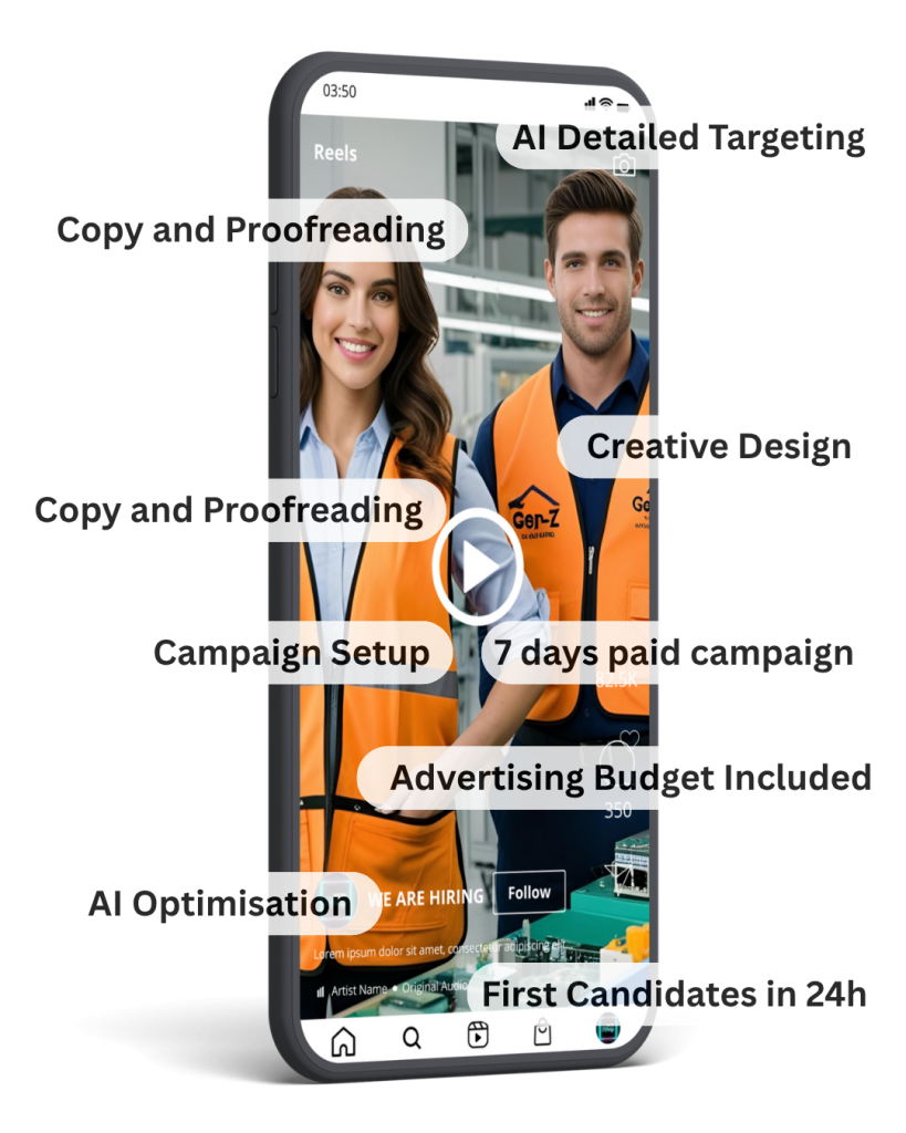 This is a done-for-you 7-day Meta (Facebook and Instagram) ad campaign designed and AI optimised to flood your inbox with qualified candidates in record time – without the hassle of job boards or long-term commitments.