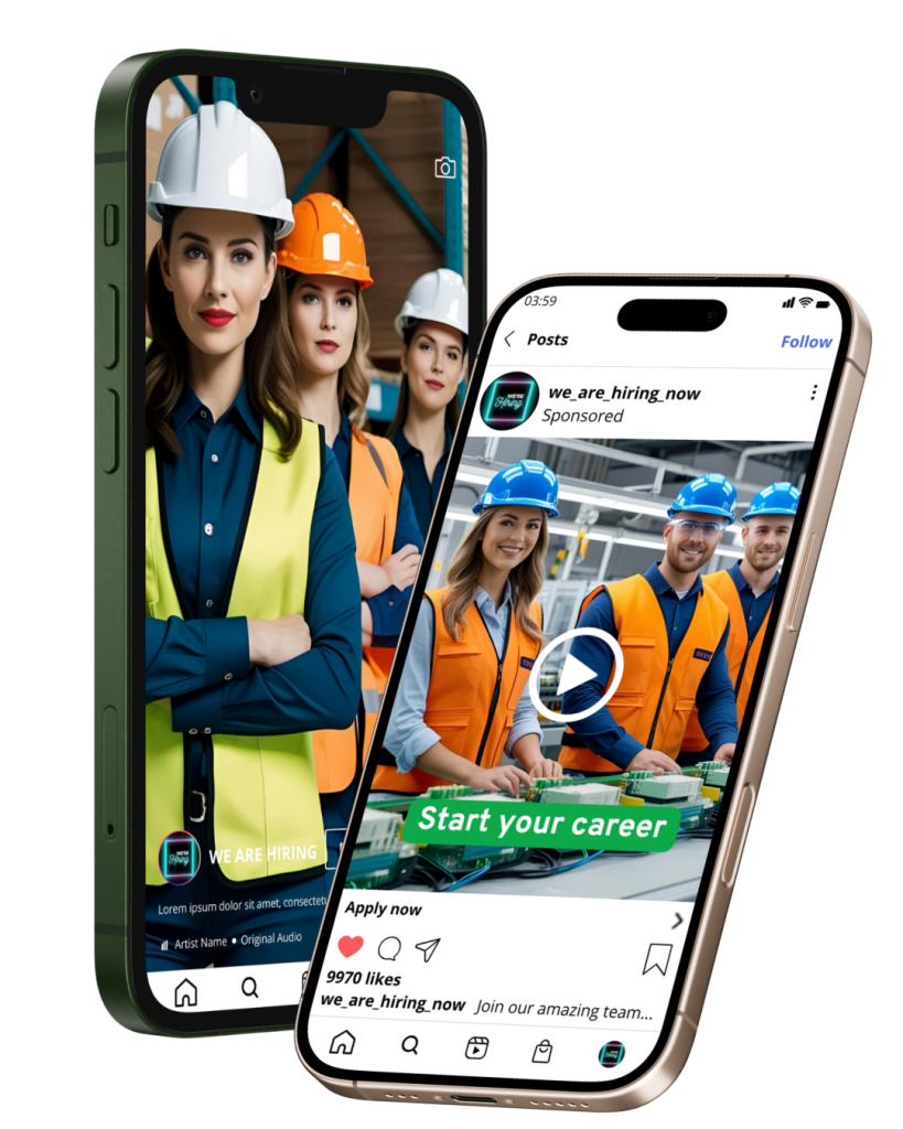 - You reach active and passive candidates scrolling Facebook, Instagram, and TikTok